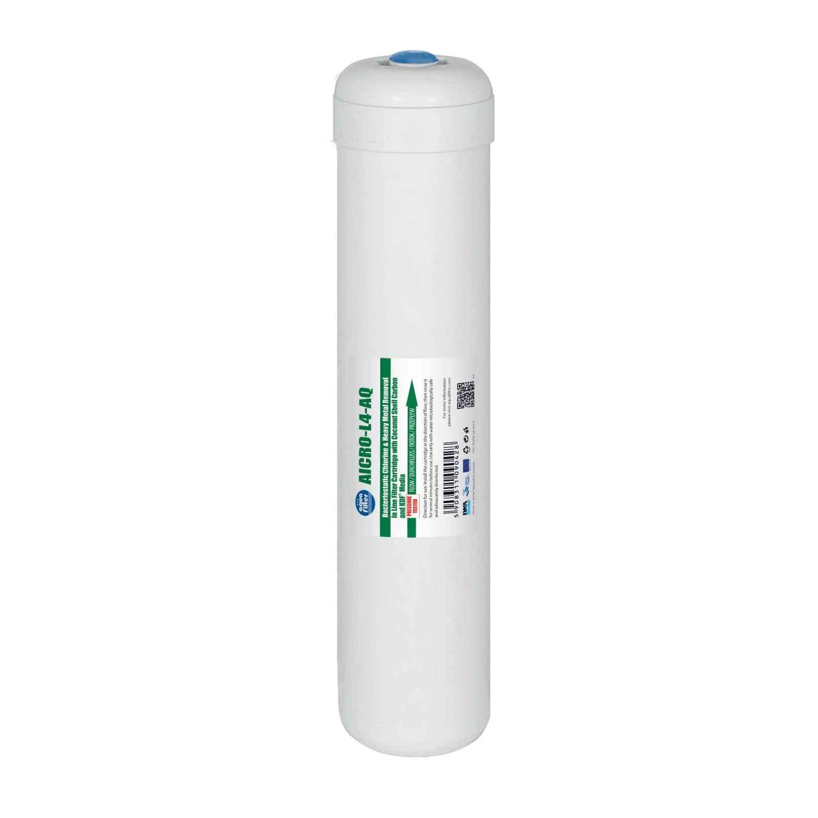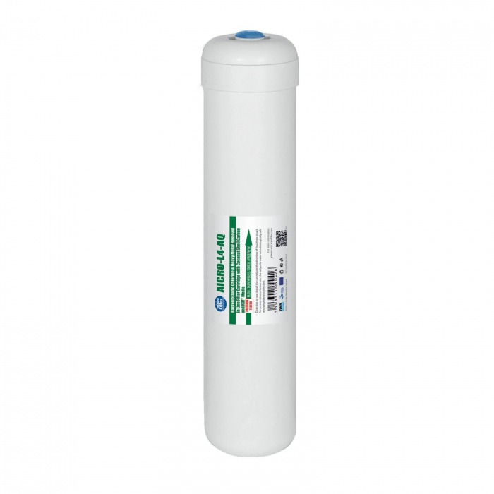 AICRO-L4 (AICRO-4-QM și AICRO-L4) cu suport KDF® adecvat pentru instalații POU (Punct de utilizare). Prin combinația sa precisă de cărbune activ granular (GAC) și medii KDF®. Cartușele AICRO-L4 reduc concentrația de clor, COV, hidrogen sulfurat, metale grele precum fierul, cuprul, plumbul, mercurul și arsenicul. Seria AICRO-L4 îmbunătățește gustul și mirosul apei potabile și mediul KDF® extinde durata de viață a cartușului dvs., asigurând o alimentare continuă cu apă potabilă proaspătă și curată.