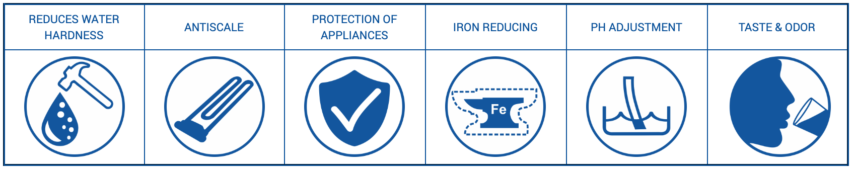 Tip cartus: Duritatea, Dedurizare, Cartus filtrant, Imbunatateste gustul si mirosul, Elimina fierul si manganul, Imbunătățirea proprietăților organoleptice ale apei