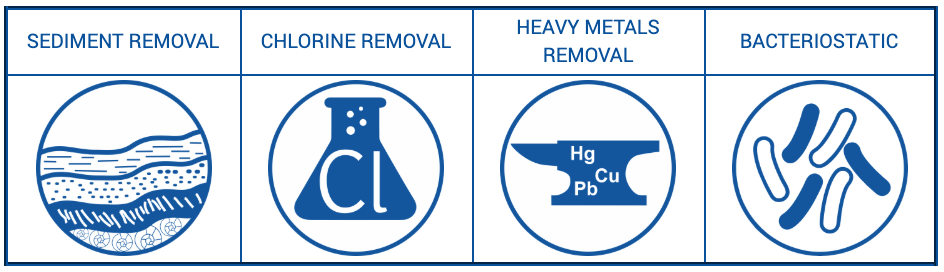 Material filtrant: Reduce concentratia de clor, elimina metale grele
