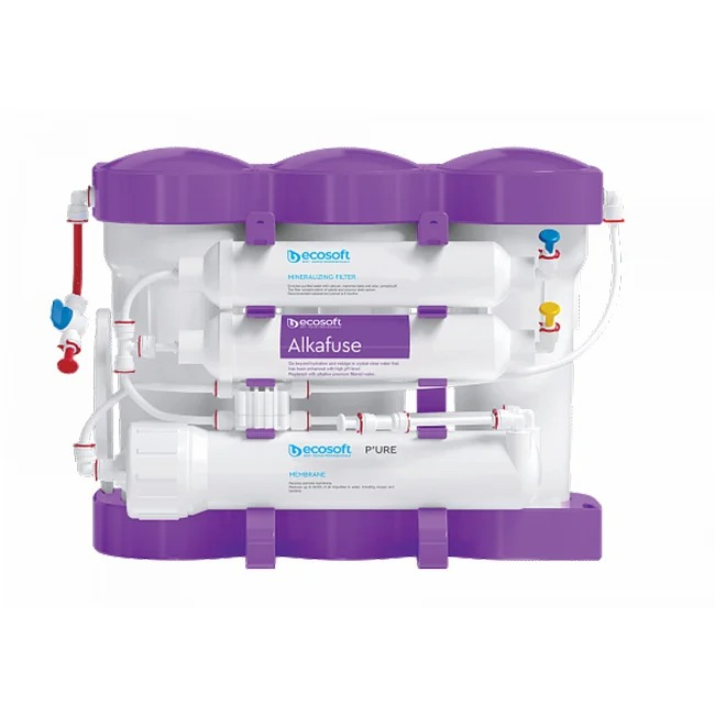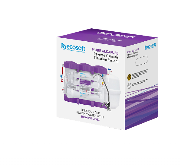 Filtrul de osmoză inversă Ecosoft P’URE Alkafuse este conceput pentru a purifica apa potabilă la o calitate ideală în case cu până la 5 persoane.